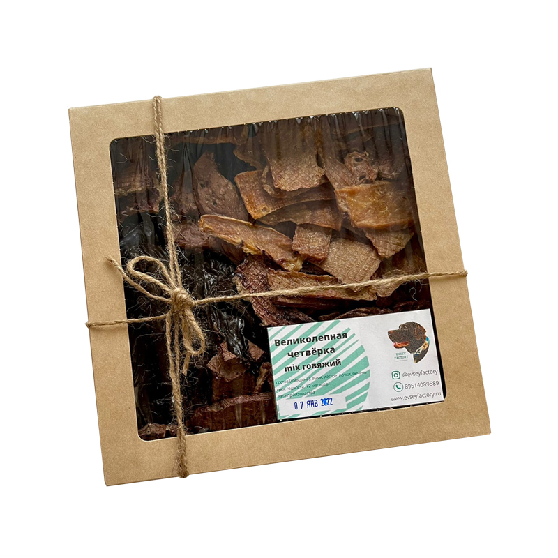 Набор "Великолепная Четвёрка" говяжий mix подходит для щенков от 3х месяцев и взрослых собак.