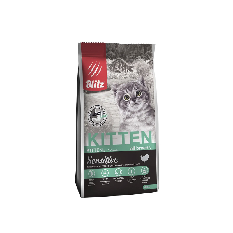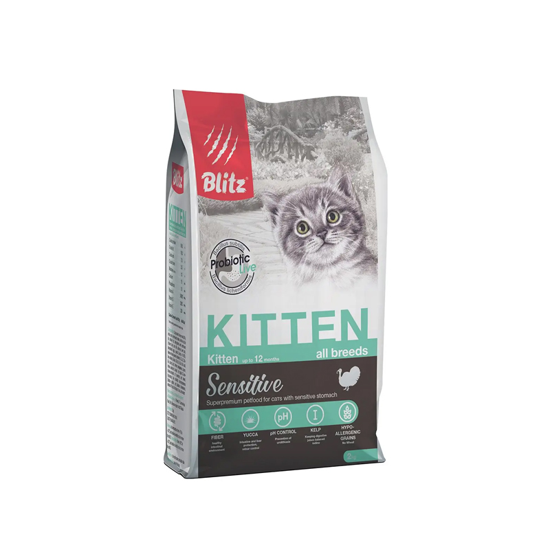 Сбалансированный сухой корм класса супер премиум обеспечивает особые потребности растущих котят, но также может быть использован для беременных и кормящих кошек: Blitz Kitten содержит оптимальный баланс белков, жиров и других питательных веществ. Живые пробиотики, добавленные в формулу корма "Блиц" для котят, способствуют правильному росту и развитию малышей, стимулируют формирование крепкого иммунитета. Входящий в состав корма фенхель снижает газообразование и успокаивает кишечник. Сухой корм Blitz с индейкой для котят, беременных и кормящих кошек учитывает особенности нежного и чувствительного пищеварительного тракта котёнка, а также необходимость в энергии для игр и познания мира.