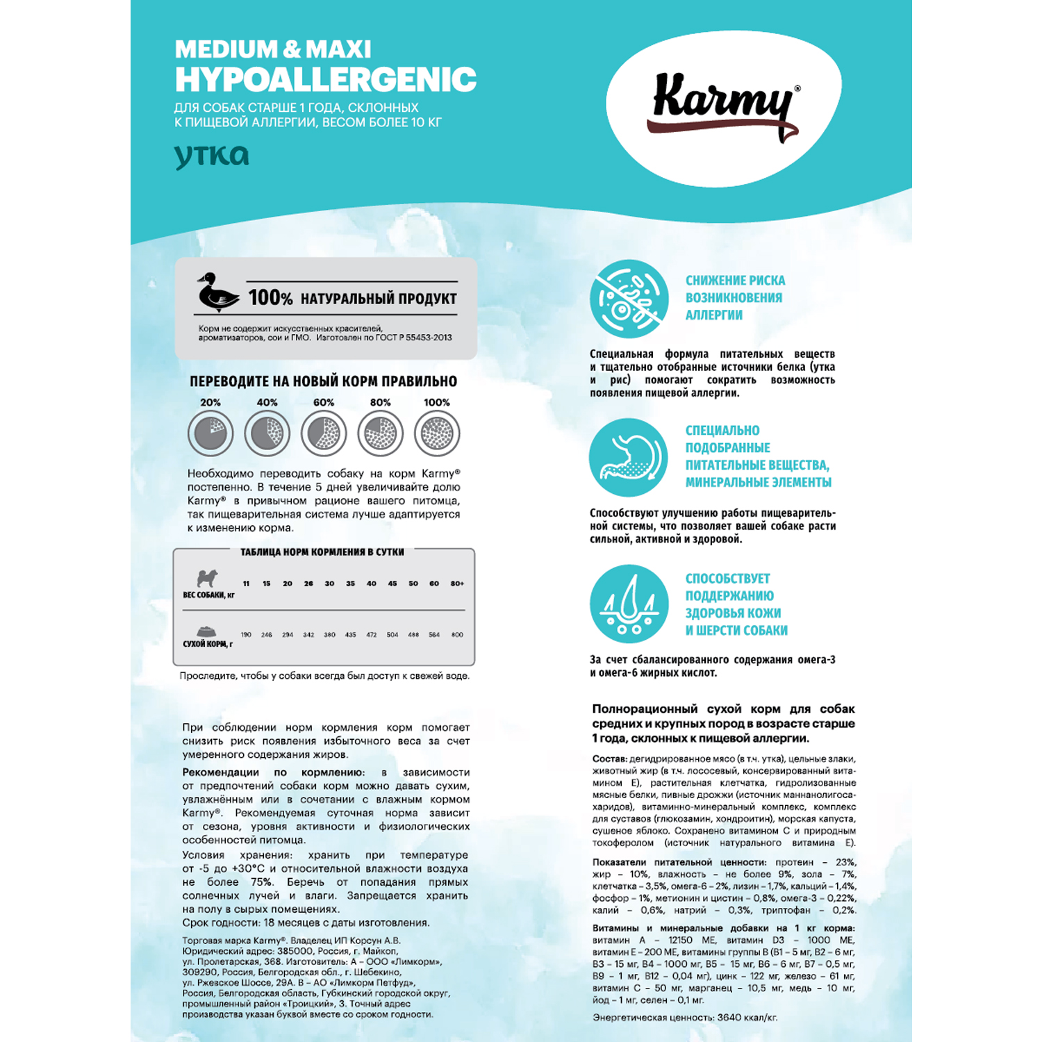 Полнорационный сухой корм для собак средних и крупных пород старше 1 года, склонных к пищевой аллергии.