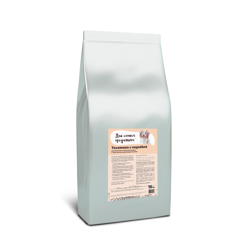 Бурый цельный рис, дегидрированное мясо телятины, дегидрированное мясо индейки, маис, жир лососевый (естественный источник омега-3 и омега-6), сухая свекольная пульпа, пивные дрожжи (источник маннанолигосахаридов), комплекс витаминов и минералов, экстракт Юкки Шидигера, сохранено витамином С и смесью природных токоферолов (источники натурального витамина Е).
