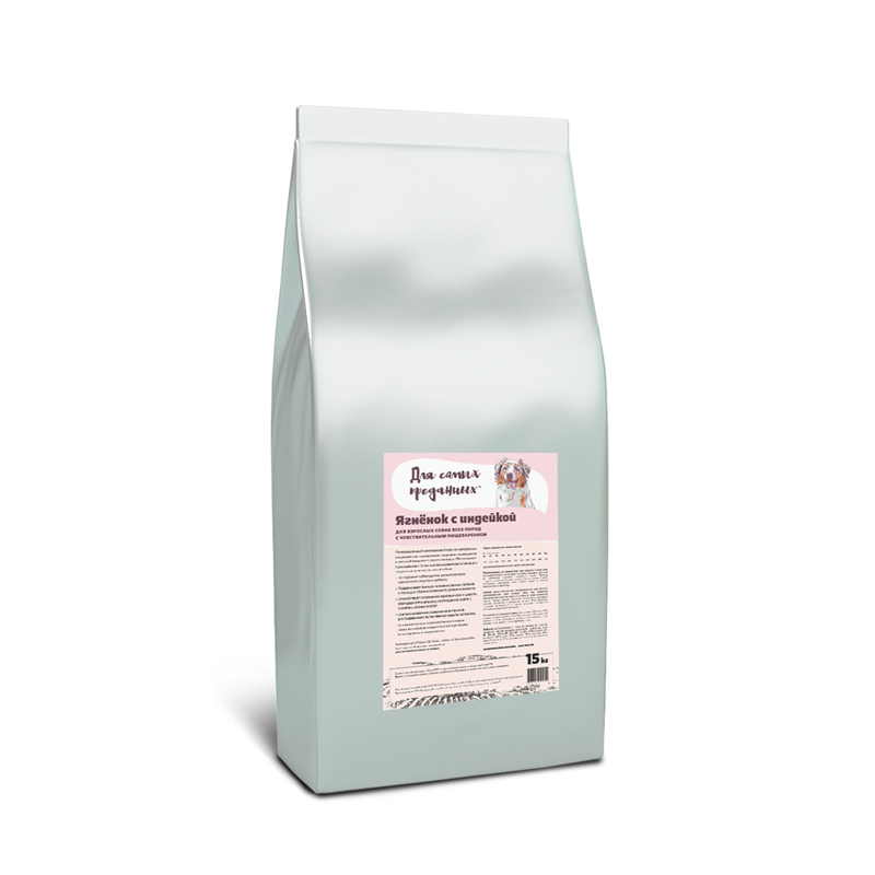Бурый цельный рис, дегидрированное мясо ягненка, дегидрированное мясо индейки, маис, жир лососевый (естественный источник омега-3 и омега-6), сухая свекольная пульпа, пивные дрожжи (источник маннанолигосахаридов), комплекс витаминов и минералов, экстракт Юкки Шидигера, сохранено витамином С и смесью природных токоферолов (источники натурального витамина Е).