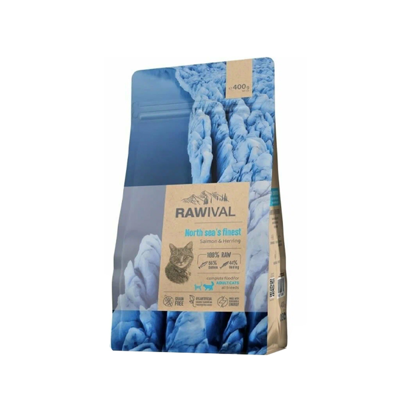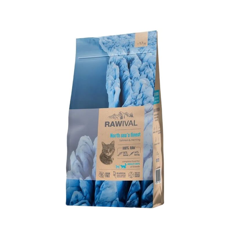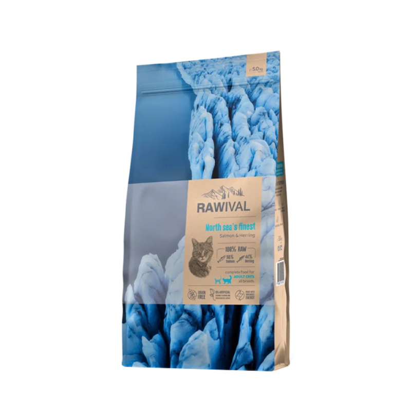 Полнорационный сухой корм ультрапремиум-класса на основе лосося и сельди для взрослых кошек. Высокое содержание белка из свежей рыбы, отсутствие злаков и натуральные необработанные ингредиенты делают RAWIVAL питанием, предназначенным самой природой.