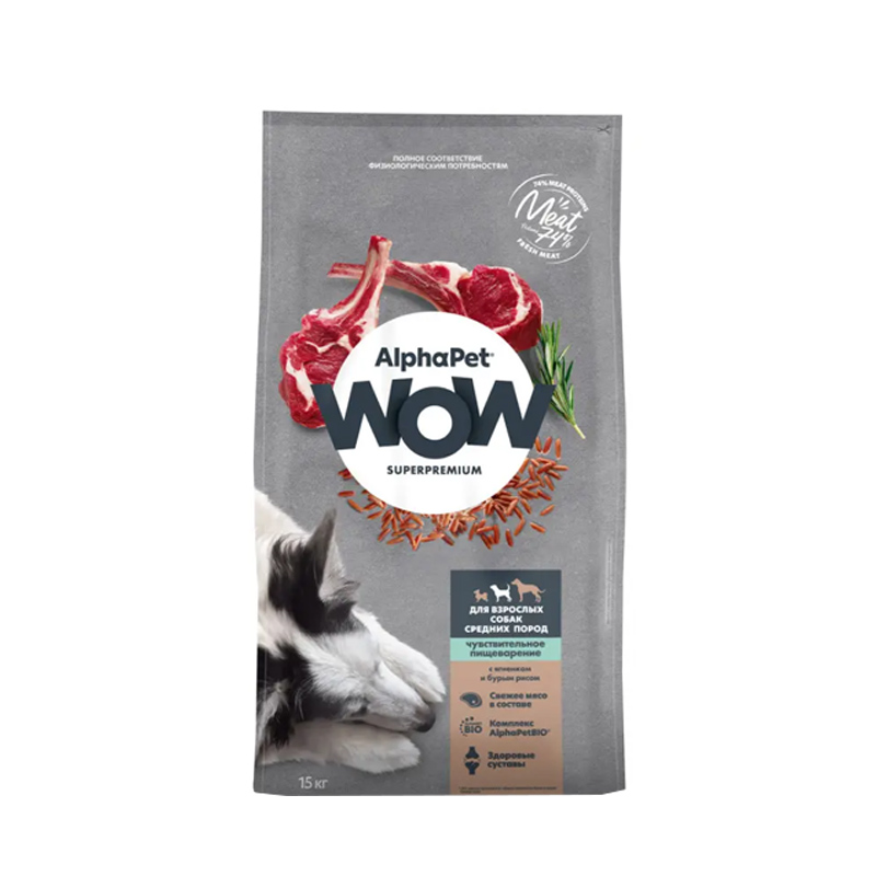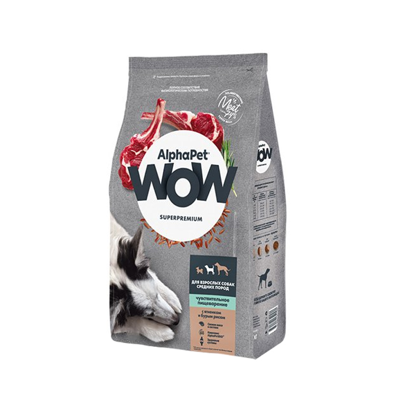 Сухой полнорационный корм с ягненком и бурым рисом для взрослых собак средних пород с чувствительным пищеварением.